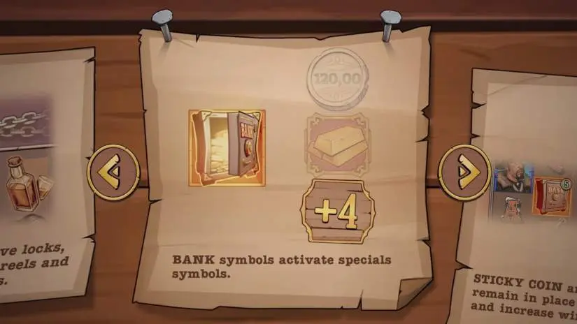 The Bank symbol is something to rely on, as it opens up incredible opportunities. Hit it anywhere along with the coins. Faster than the Wild West’s best gunslinger, and rewards will be added to your balance. Bang! Bang! And your pockets are full.