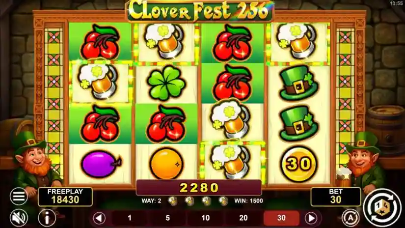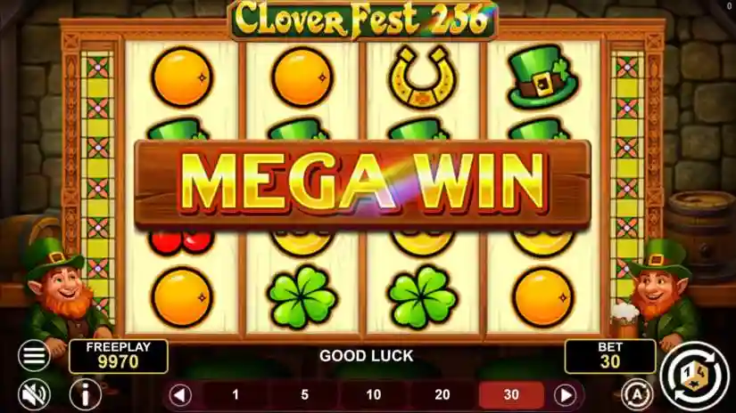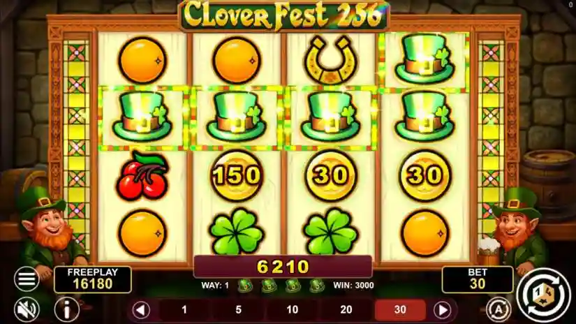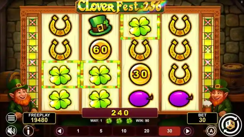 Each coin in Clover Fest 256 from 1spin4win indicates its winning value. If 3 or more coins appear on the screen in any position, the coin winnings are added to the game’s winnings.