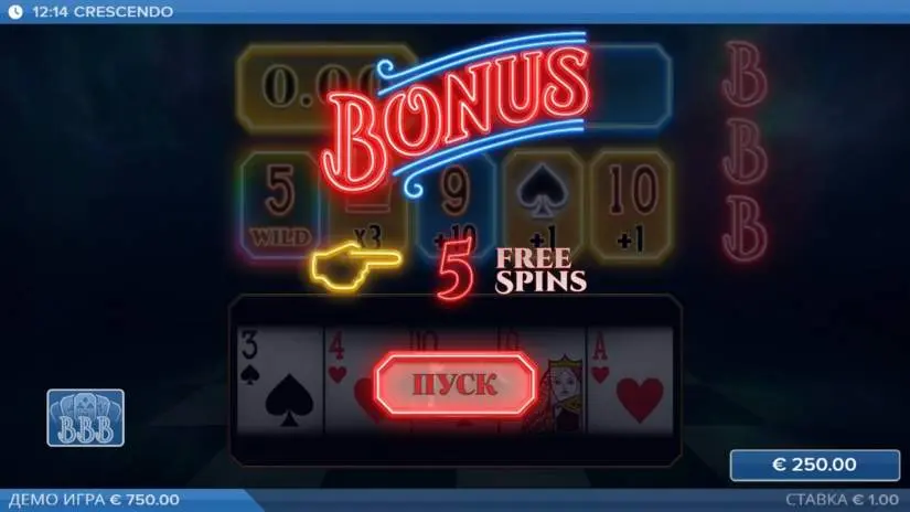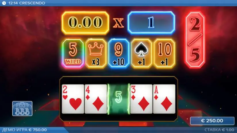 Crescendo by ELK Studios is a poker style slot with 5 reels in 1 row and a 5-position feature wheel.