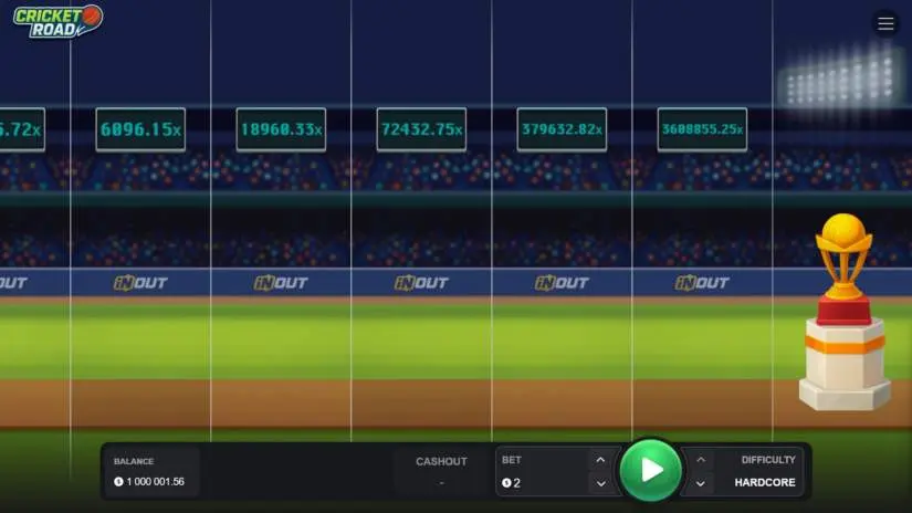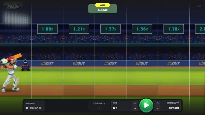 Cricket Road by InOut Crash brings the beloved runner-style mechanics to the heart of one of the world’s most iconic sports. Here, every shot matters: choose your bet, difficulty level, and guide a skilled cricketer through a constant stream of balls. Time every shot perfectly: every clean hit increases your multiplier and boosts your winnings. Play it safe on easier levels or test your skill on higher risk levels for huge rewards.