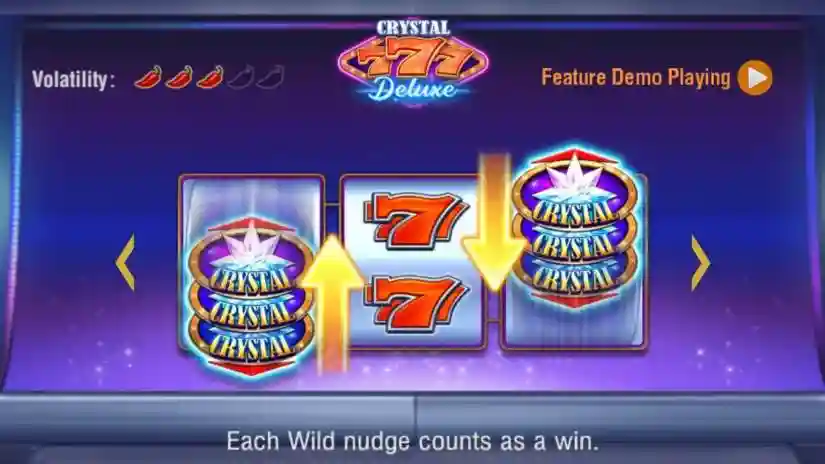 Nudge Wild symbols can substitute for all other symbols. Nudge Wild symbols appear only on reels 1 and 3. If the top half of a Nudge Wild symbol lands, the reel shifts to the top position. If the bottom half of a Nudge Wild symbol lands, the reel shifts to the bottom position. Each shift awards a payout according to the paytable.