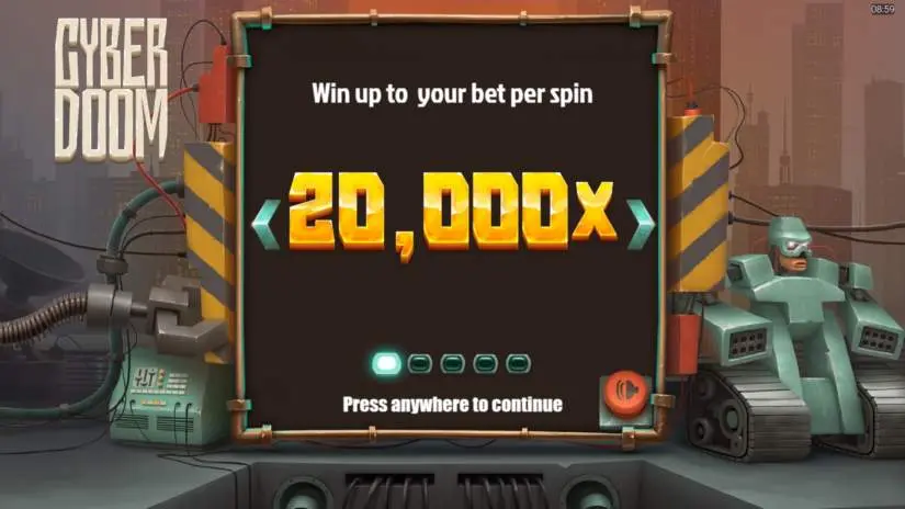The maximum win in the Cyber Doom game is limited to 20,000x the bet.