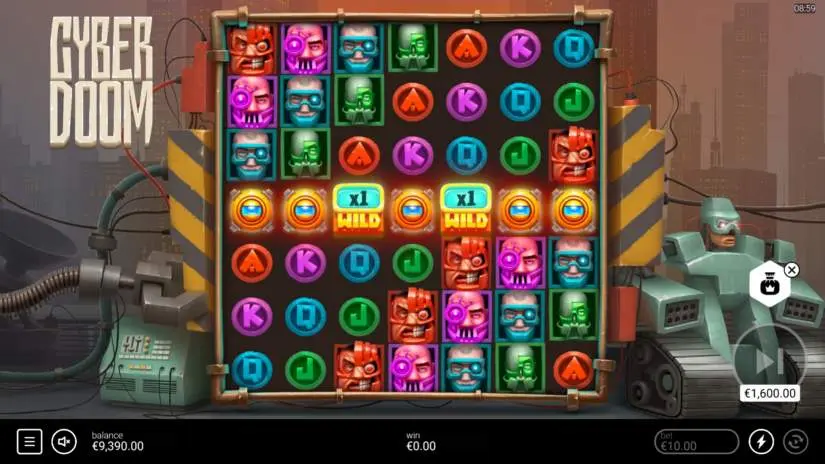 Welcome to Cyber Doom by Bitpunch! A high volatility 7×7 video slot with cluster payout mechanics, cascades, sticky Wilds with unlimited multipliers, exciting Free Spins and Super Free Spins!