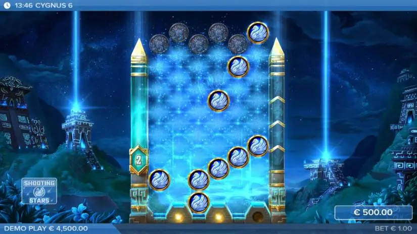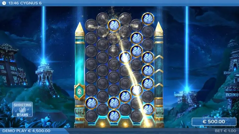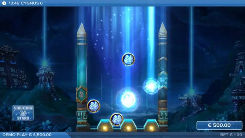 This mode features three symbol types: Mystery, premium Mystery symbols, and blockers. At the start of the Cygnus Kingdom, three Cygnus Drops are awarded, and all symbols before the constellation’s stars are transformed into Mystery symbols. Landing a premium Mystery symbol resets the drop counter to 3. During each Cygnus Drop, all blocker symbols are removed and replaced with other blocker, Mystery, or premium Mystery symbols.