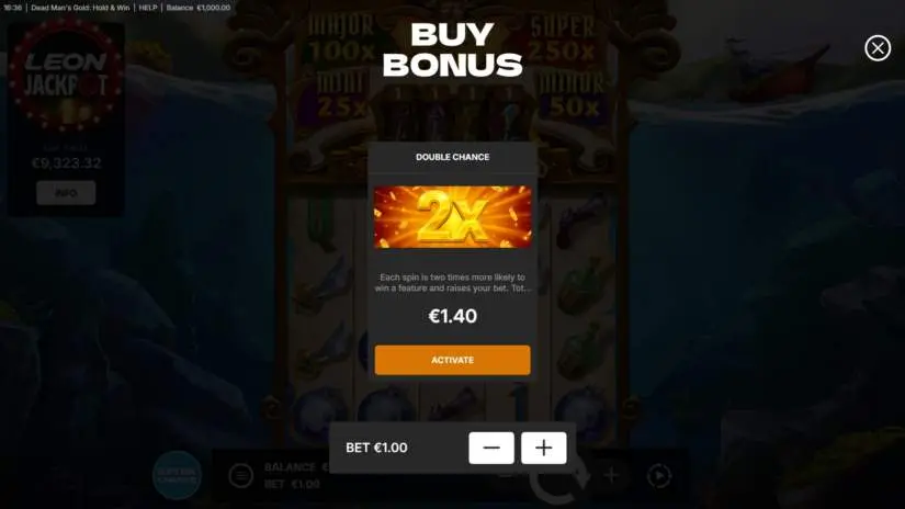 To enable the Double Chance feature, click the “Extra Chance” button and select “Activate” on the Double Chance card. To disable the feature, click the “Disable” button on the control panel. Activating the Double Chance feature doubles your chances of winning the game feature. This also increases the total bet amount for each spin. The amount by which the total bet is increased is always displayed in the Double Chance window. Any progress saved across game sessions is saved with the same Double Chance settings.
