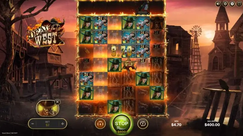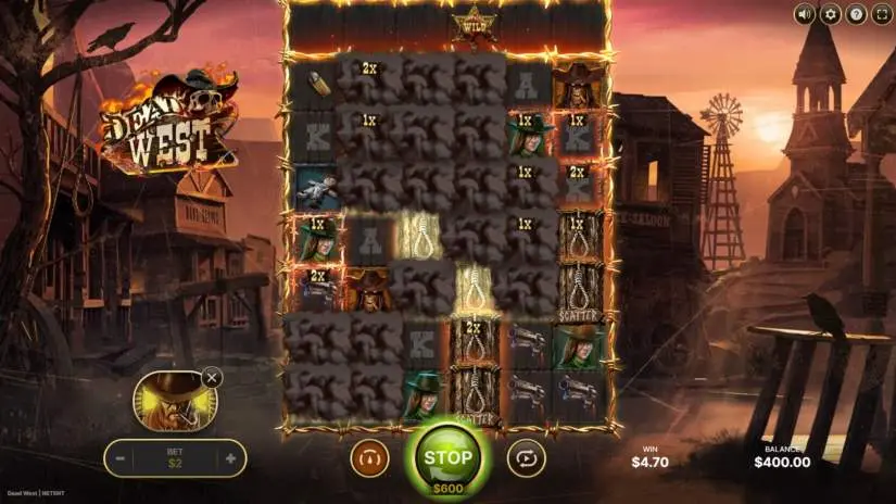 Dead West is a 7-reel, 7-row video slot from NetEnt with Avalanche™, special features, hot zones, free spins and Elevate feature with 5 options.