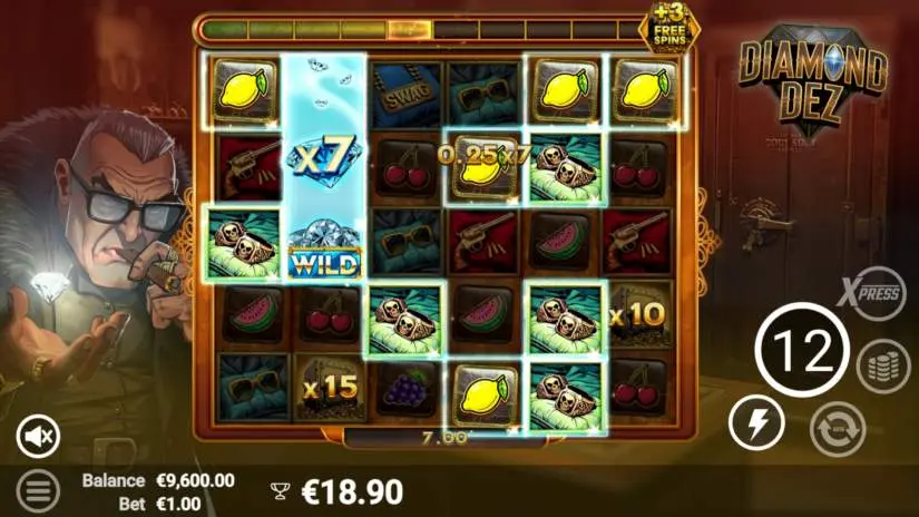 Enter the Diamond Dez Bonus with 10 Free Spins for a 60x bet, with the option to choose a level, each containing a fixed number of Free Spins.