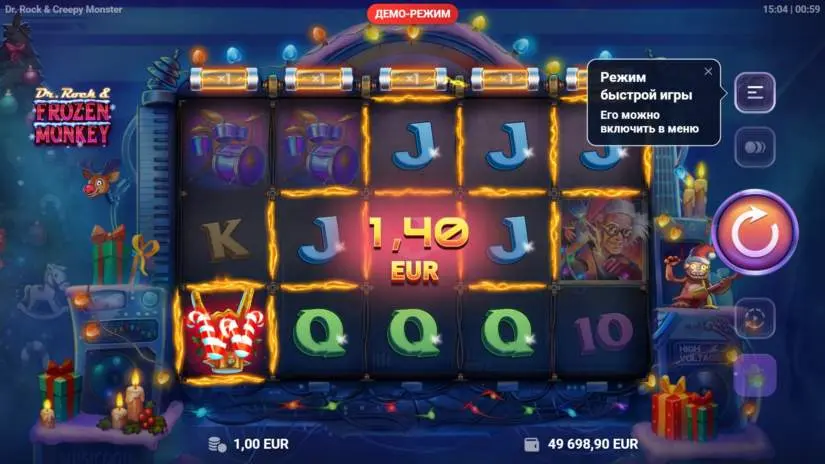 The maximum win in a single round of Dr. Rock & Frozen Monkey is 10,000 times the bet. The maximum recorded win is 10,000 times the bet. This win occurred once in 2,120,441 simulated game rounds.