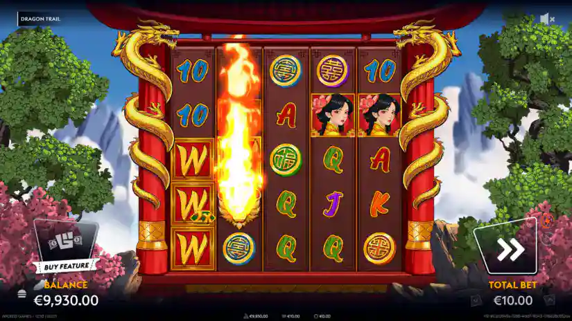 When the Wild dragon symbol appears on the reels, it expands in the direction indicated. This expansion fills the entire reel with regular Wild symbols, helping to form winning combinations.