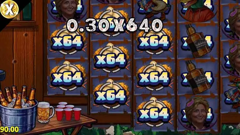 At 90x the base bet, the starting multiplier for all positions will be x64.