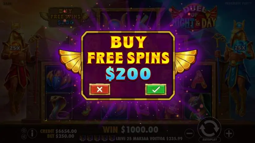 Definitely, our platform offers the opportunity to enjoy a demo version of Duels of Night & Day without any need for signing up. Moreover, any online casino that collaborates with Pragmatic Play would grant users unrestricted entry to the test mode, completely free of charge.