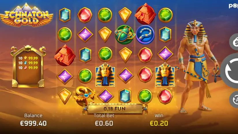 - €/$0.20 per spin is a starting bet in the Echnaton Gold
