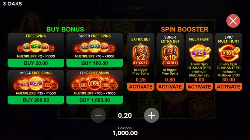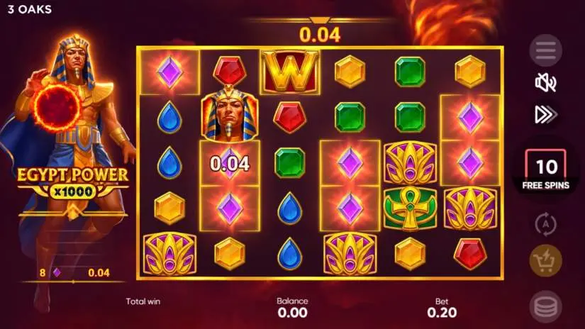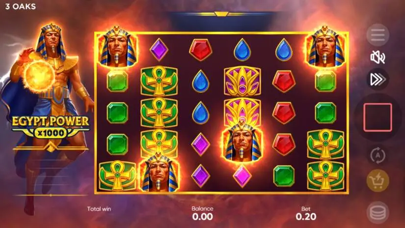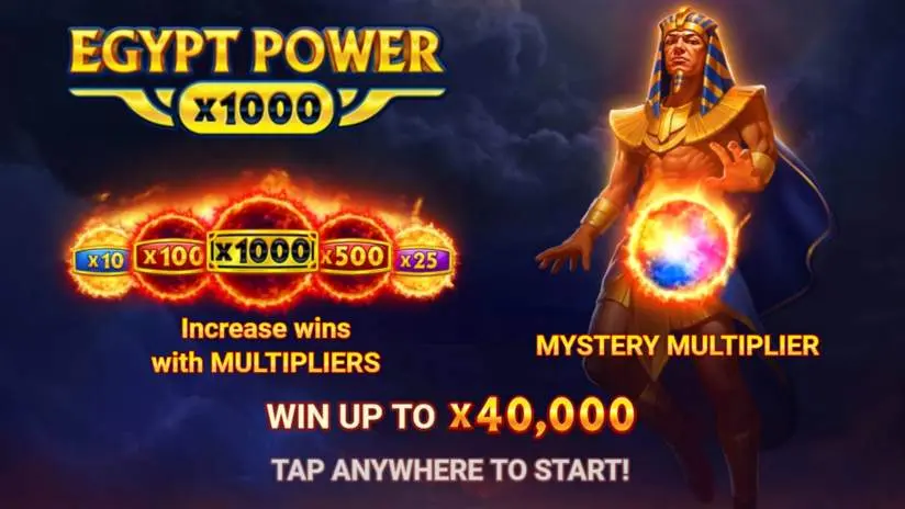 The maximum win is 40,000 times the bet in the Egypt Power x1000 slot. If the total win for a round reaches 40,000 times the bet, the round ends immediately and the maximum win amount is awarded. During this round, all remaining wins will be cancelled.