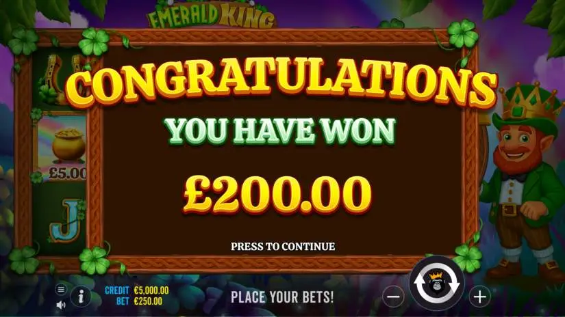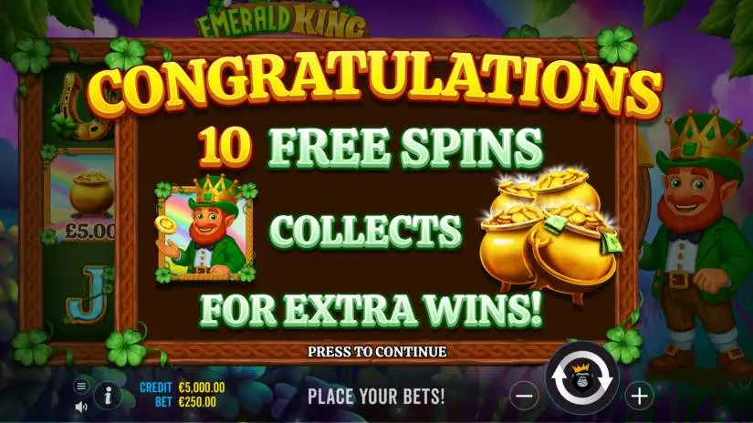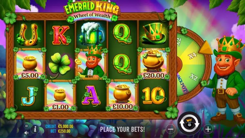 Adventures at the end of the rainbow await you in Emerald King – Wheel of Wealth from Pragmatic Play. All symbols pay from left to right on adjacent reels, starting with the leftmost reel.