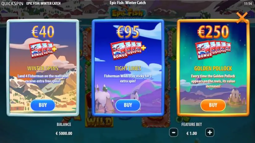 Epic Fish: Winter Catch is a 5-reel, 10-line slot from Quickspin with three symbols, a FISH COLLECTION feature, and three types of FREE SPINS, including EXTRA FREE SPINS, STICKY WILDS, and GOLDEN FISH.