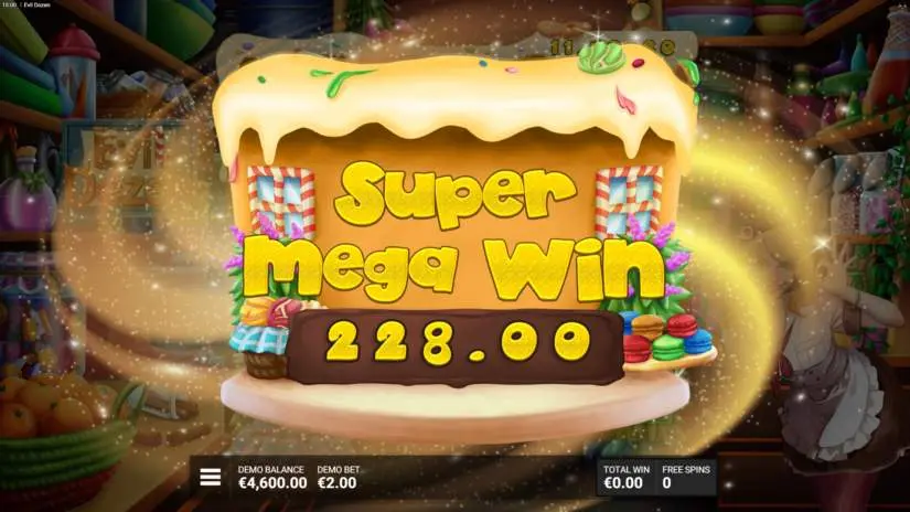 The maximum win achievable in the Evil Dozen game is 7,500 multiplied by the current bet level. Maximum gains can be achieved when activating certain combinations and/or features.