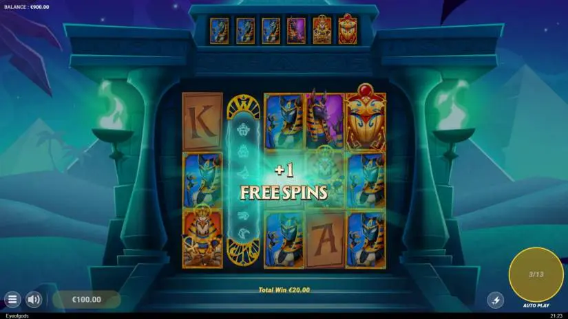 During Free Spins, the Wild symbol upgrades the lowest God symbol and awards 1 extra Free Spin until all Gods are transformed into Scarabs.
