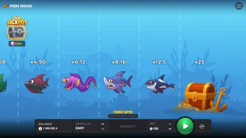 “Fish Road” is a captivating underwater adventure from InOut Crash, where every swim can earn you a big multiplier or get eaten by another fish. Initially, you’ll need to choose a difficulty level (there are three), guide your brave fish through the depths, and collect multipliers with every successful move. But always beware of enemy fish—one wrong move, and your catch is gone!