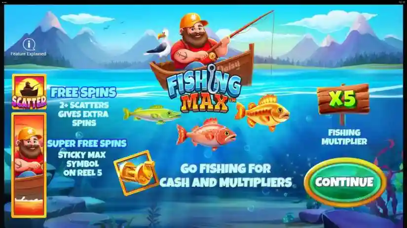 The Fishing feature is triggered when 1 or more Golden Reels and the Max symbol appear in a single spin.