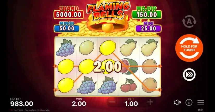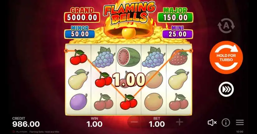 Fill all the cells in the Flaming Bells slot from Playson and get the Grand Jackpot of 5000.00!