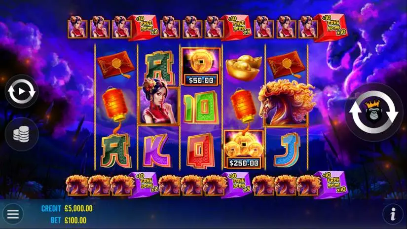 Definitely, our platform offers the opportunity to enjoy a demo version of Floating Dragon Wild Horses without any need for signing up. Moreover, any online casino that collaborates with Reel Kingdom would grant users unrestricted entry to the test mode, completely free of charge.