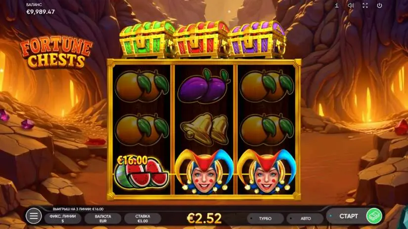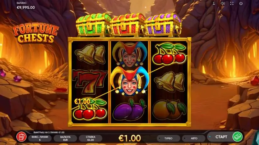 FORTUNE CHESTS by Endorphina is a 3-reel, 3-row, 5-fixed payline slot.