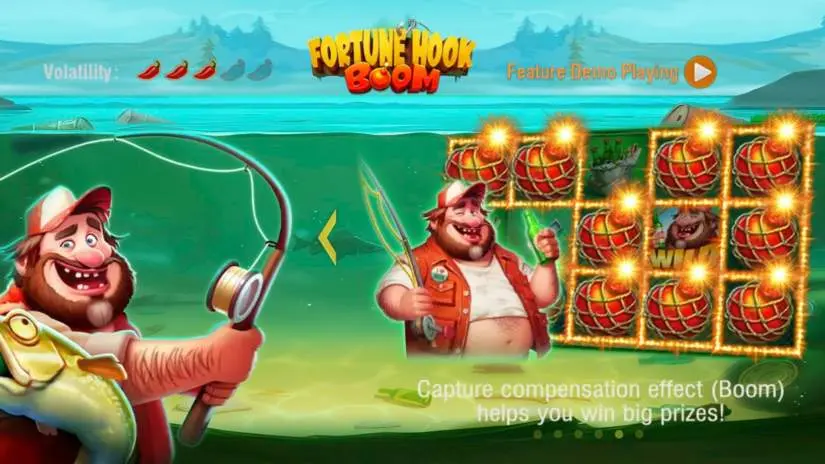 A failure voids all payouts and games in Fortune Hook Boom. If a failure occurs during the bonus game, the system will automatically end the game and award the player. If a failure occurs after the player’s bet has been received and the player can no longer influence the outcome, the bet remains valid.