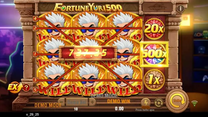 Winning symbols in Fortune Yuri 500 are paid from left to right on selected paylines. Only the highest win on each payline is paid. A win in the standard betting mode = Payout x Special Reel Multiplier / 5. Bonus games use the same betting settings as the trigger game. Winning combinations and payouts are formed according to the paytable. Wins in the side betting mode are calculated based on the standard betting settings and paytable values.