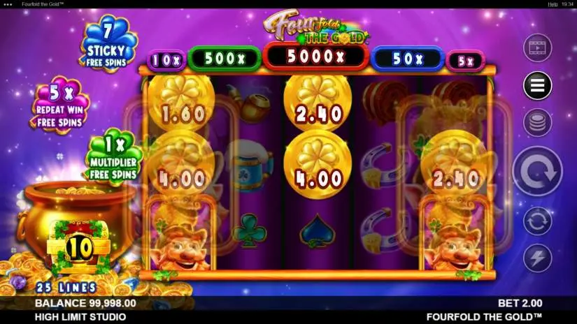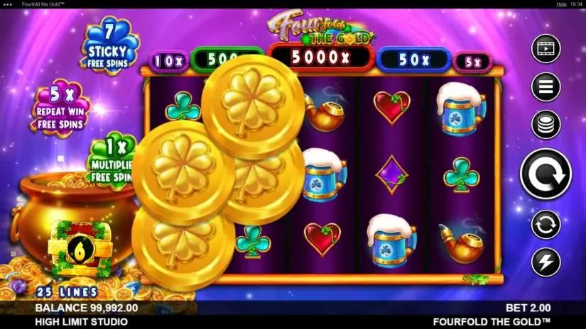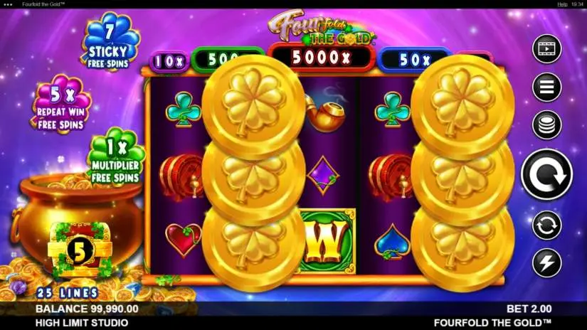 Fourfold the Gold is a 5-reel, 3-row slot machine from High Limit Studio. The goal is to spin the reels until a winning combination appears. Winning combinations are highlighted on the reels and pay out.