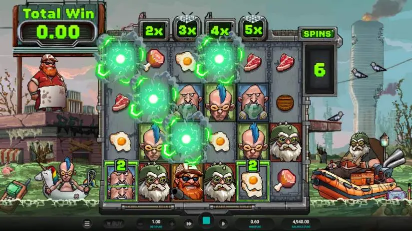 The theoretical RTP (return to player) for the bonus bet is 96.50%. Playing with the “Buy” feature pays 60 times your regular bet. Activating the “Buy” feature guarantees three bonus symbols and access to the “Last Man Standing” free spins round.