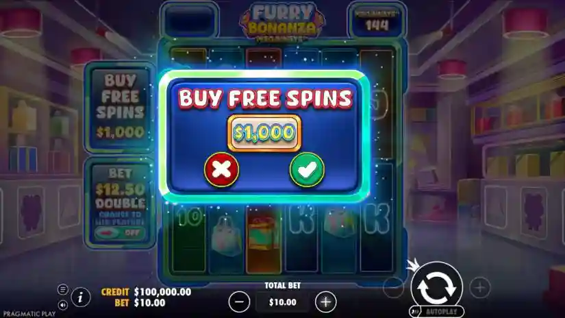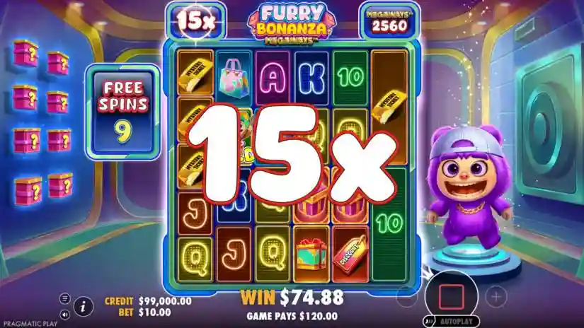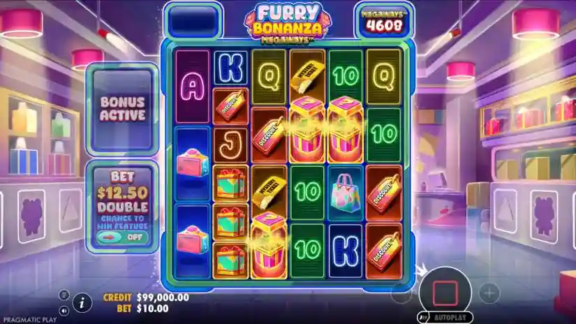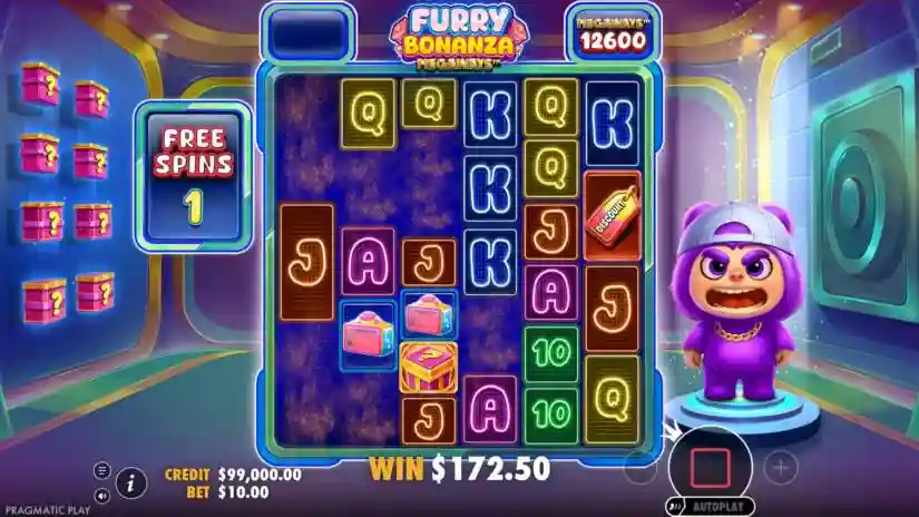 The maximum win in Furry Bonanza Megaways is capped at 5,000x the bet. If the total win during a FREE SPINS ROUND reaches 5,000x the bet, the round ends immediately, the winnings are awarded, and any remaining FREE SPINS are forfeited.
