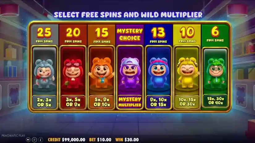 Before the round starts, choose one of the 7 FREE SPINS options: