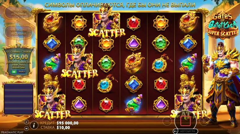 Symbols in Gates of Gatot Kaca Super Scatter from Pragmatic Play pay out anywhere on the screen. The total number of matching symbols on the screen at the end of a spin determines the winning amount.