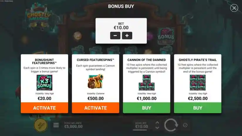 If the player purchases GHOSTLY PIRATE’S TRAIL, the theoretical return to player percentage is 96.3%. For full details on this feature, see the section above. 10 free spins, in which the collected multiplier remains active until the end of the bonus game! Volatility: Very High.