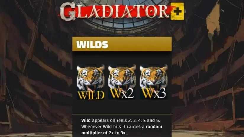 Appears on reels 2, 3, 4, 5 and 6. Each time the Wild symbol appears, it awards a random multiplier of 2x or 3x, which is applied to all winning combinations with it.