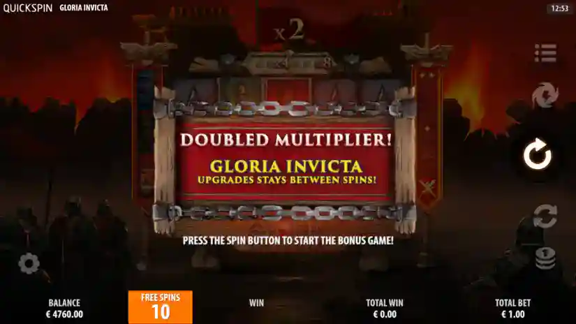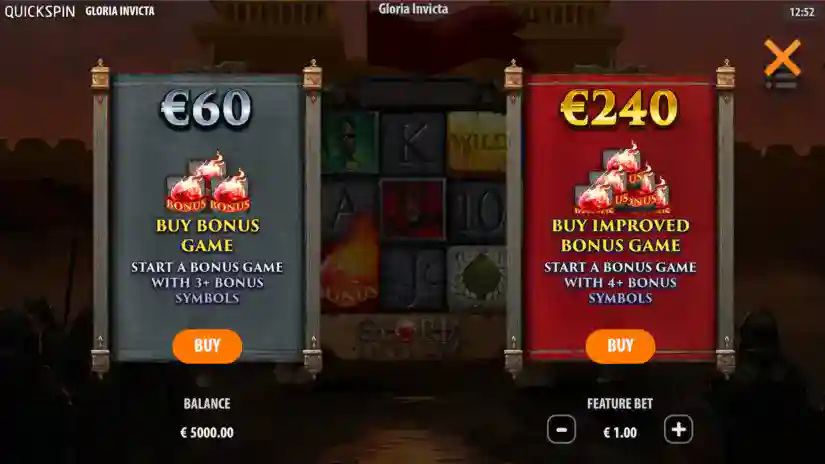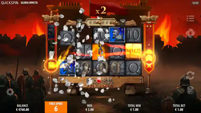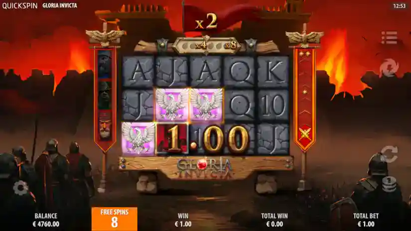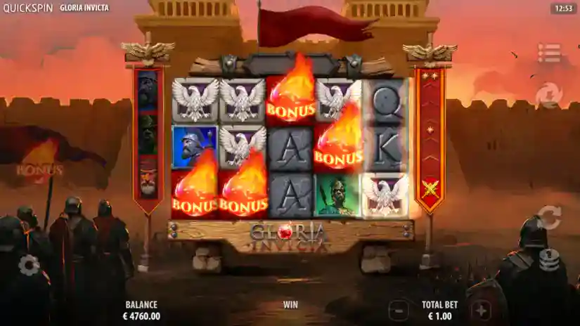 Gloria Invicta is a 3-reel, 5-payline, 25-win game from Quickspin, featuring Tumbling Reels, Wild Commanders, Power Up, and a Bonus Game.