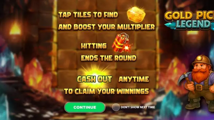 In Gold Pick Legend, every gold nugget you find fuels your journey to riches. As you find gold, a progress bar lights up, and each illuminated segment marks a step toward the legendary treasure.