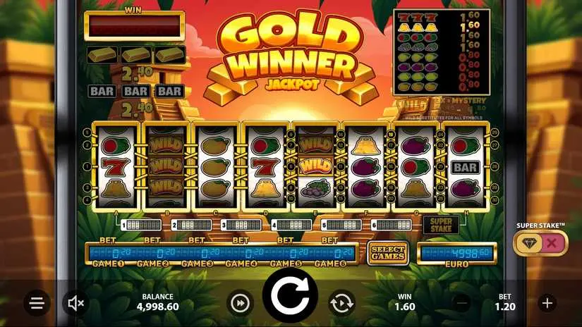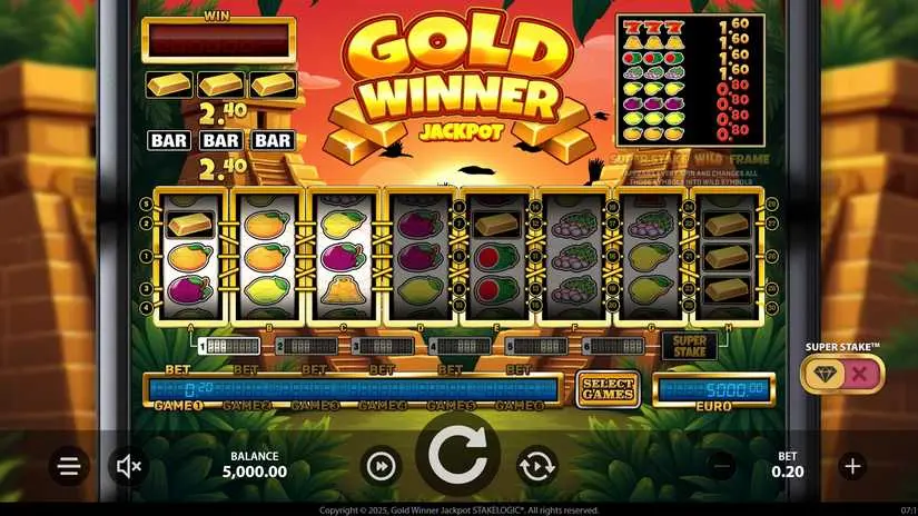 Welcome to the Gold Winner Jackpot slot from Stakelogic, where classic style meets golden rewards. Spin reels filled with juicy fruits, jingling bells, and glittering gold bars. Every spin delivers the thrill of endless winnings and pure retro fun.