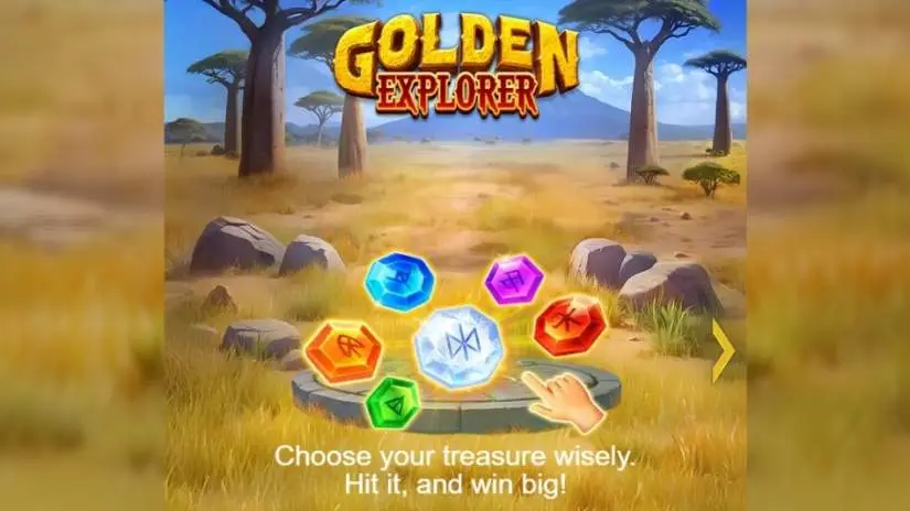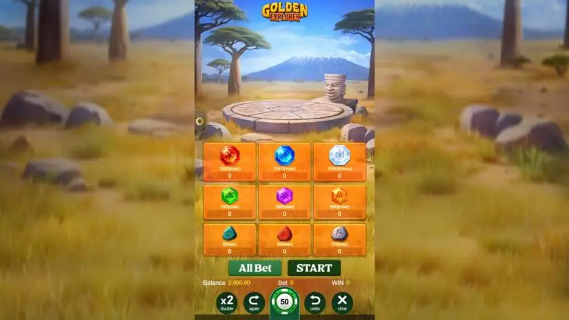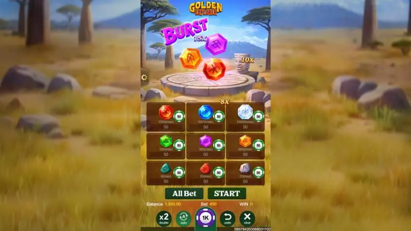 Golden Explorer is a gem-themed casino game from Tada Gaming. Before the game begins, players can place bets on any of nine gem types. Multiple bets are possible. At the start of the game, one gem is randomly selected. If it matches the player’s bet, the corresponding prize is awarded. Winning combinations and payouts are calculated according to the paytable.