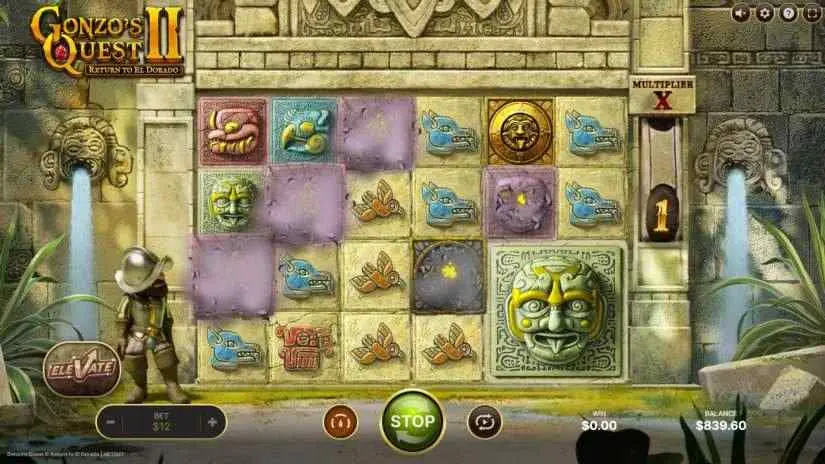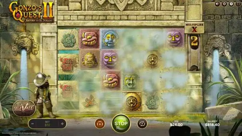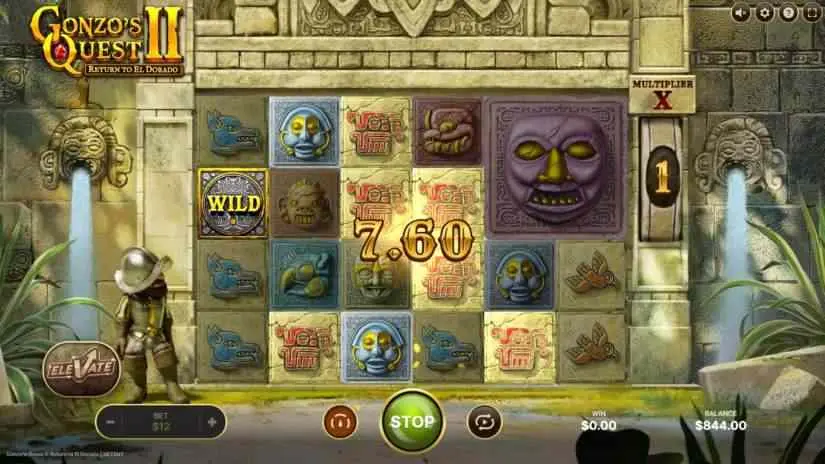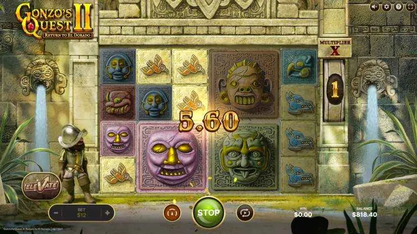 Gonzo’s Quest™ II: Return to El Dorado is a 6-reel, 4-row video slot from NetEnt with expanding reels, Avalanche™, Random Wilds, multipliers, free spins, super free spins and an Elevate feature with 5 options. The game offers up to 262,144 paylines with varying bet values. Matching symbols in any position on three or more adjacent reels, starting from the leftmost to the rightmost, without skipping, results in a payline win. Additional payline wins are generated when additional symbols appear on the same reels to create the longest winning payline. Only the longest matching combination for each symbol is paid. Simultaneous wins on different paylines are added together. A payline win is equal to the value shown in the paytable multiplied by any applicable multiplier. The payout values for the symbols shown in the paytable are dynamic and change according to the bet value selected.