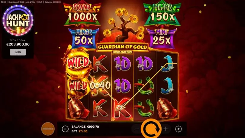 All symbols in Guardian of Gold Hold & Win pay from left to right on specific paylines.