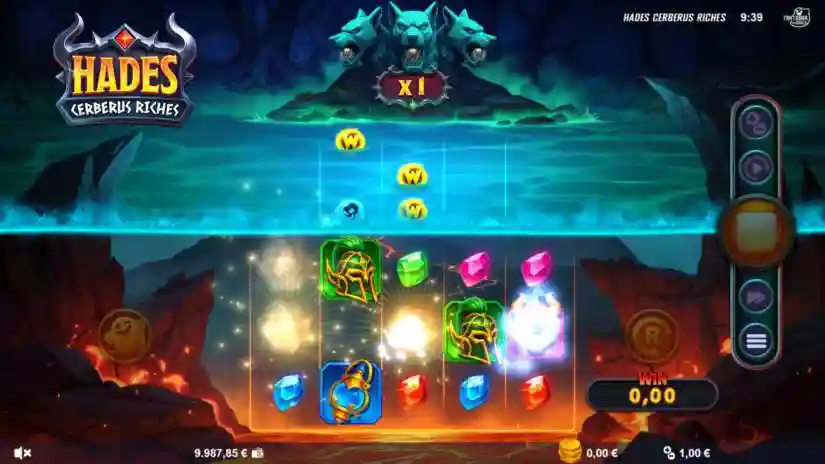 The main game and bonus spins feature an increasing multiplier called the Wild Cerberus multiplier. The Wild Cerberus multiplier starts at x1. Every 3 disappearing Wild symbols in the Avalanche feature increases the Wild Cerberus multiplier by 1 in the main game. Every 3 disappearing Wild symbols in the Avalanche feature increases the Wild Cerberus multiplier by 2 in the bonus spins. After the Avalanche feature ends, the total win is multiplied by the current Wild Cerberus multiplier. In the main game, the Wild Cerberus multiplier resets after the Avalanche feature ends. In the Hades and Super Bonus features, the Wild Cerberus multiplier does not reset until the end of the bonus rounds.