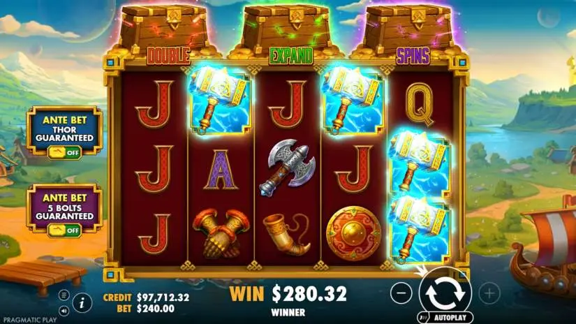 All symbols in Pragmatic Play’s Hammerstorm pay from left to right on adjacent reels, starting with the leftmost reel.