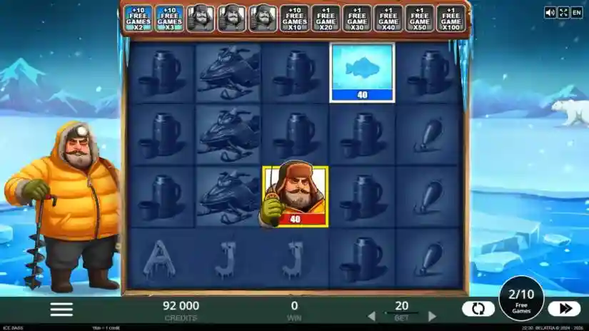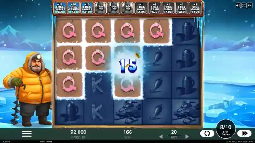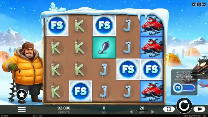 The theoretical return to player (RTP) for Ice Bass by Belatra Games is 96.05%. Due to the complexity of possible game outcomes, some theoretically possible outcomes have been hidden to create a balanced payout structure within the stated RTP. As a result, the maximum win per round in the game can reach 5,000 times the bet per game. The operator reserves the right to limit the maximum win amount. The game is built using a random number generator.
