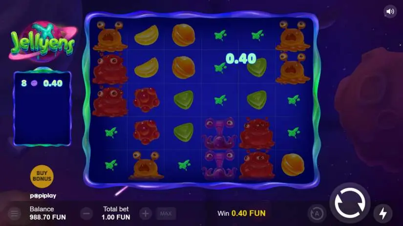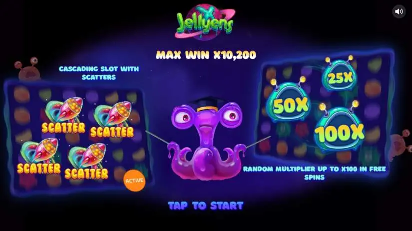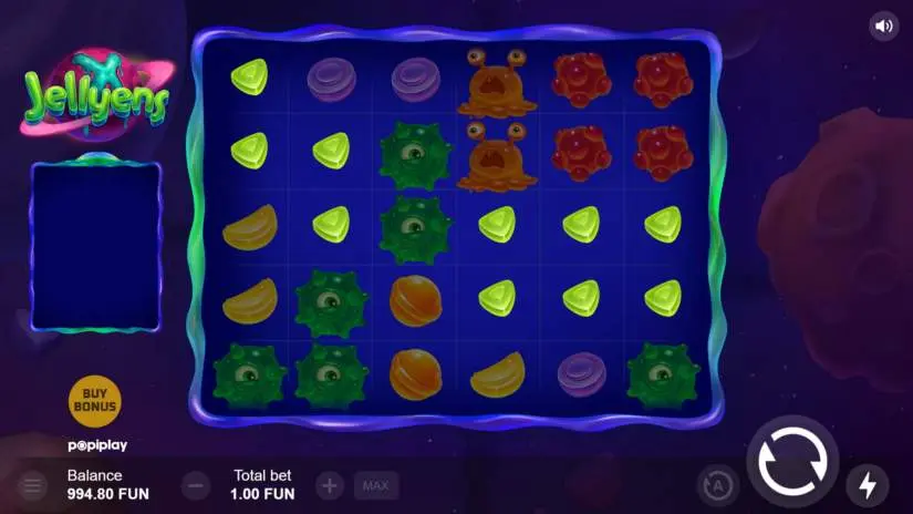 Deep in space, four jellybeans dart and squirm through the stars, chasing after one thing: cosmic candy. Jellyens X is a wobbly cascading 5×6 slot from PopiPlay that delivers chewy mayhem with expanding reels, free spins, and exorbitant multipliers. Aim for sweet galactic wins of up to 10,200x your bet with up to 30 free spins and multipliers reaching 100x. Use the Chance Booster to unlock even more sweet opportunities to trigger free spins and chase cosmic candy mayhem.