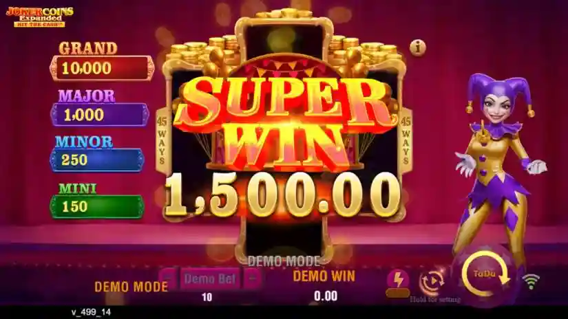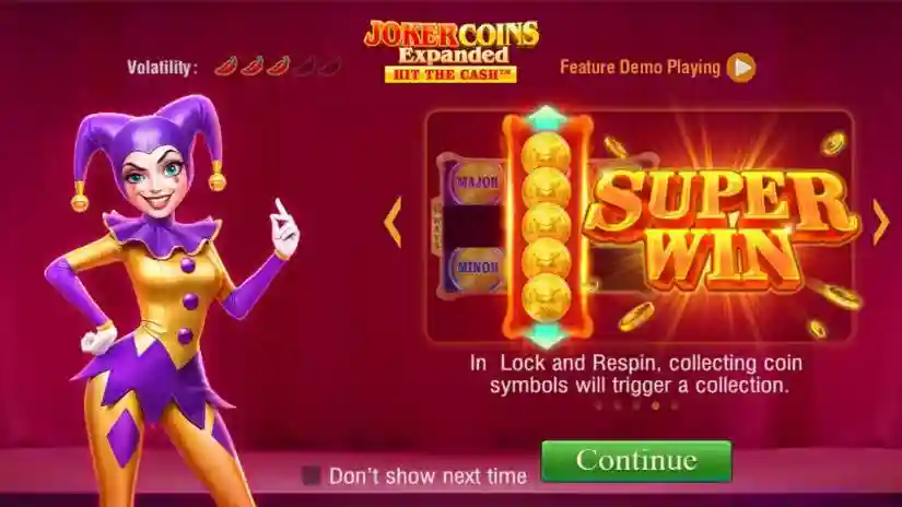 In the main game, when Joker Coins appear, they will fly to the top of the coin stack on the screen and can trigger the “Joker Coin Toss” feature. If activated, the coin stack will randomly toss at least one and up to nine Joker Coins onto the screen.