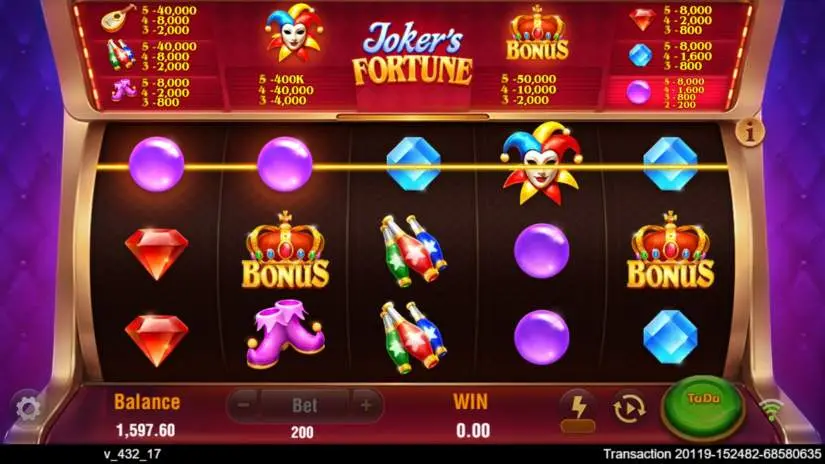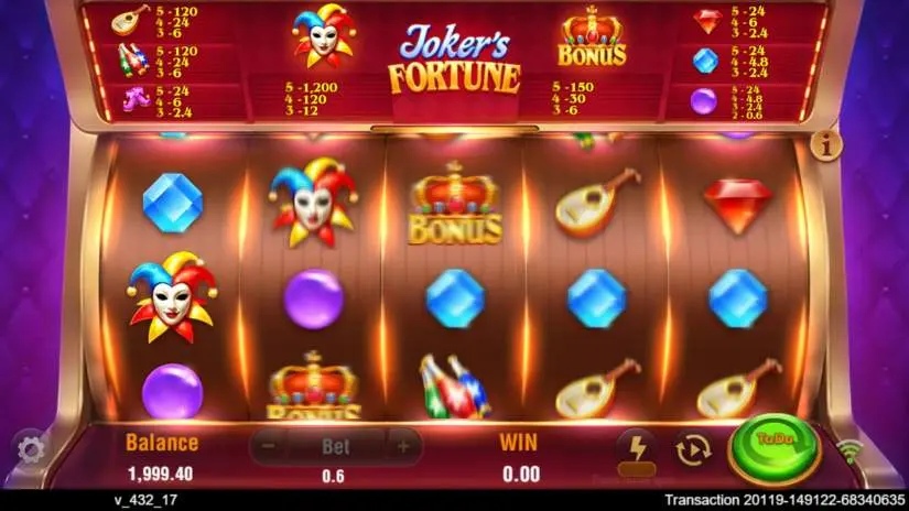 Joker’s Fortune is a 5-reel, 3-row video slot from Tada Gaming. Winning combinations of identical symbols begin on the leftmost reel and are counted sequentially from left to right on adjacent reels. Winning combinations and payouts are determined according to the paytable. Only the highest payout on each payline is paid. All winning combinations across multiple lines are summed up and included in the total payout. Bonus games are calculated based on the bet amount placed when the feature is activated. The icons displayed in the game interface are for visual representation only and do not reflect the actual odds of winning or the payout amount. Winning combinations and payouts are calculated according to the paytable.