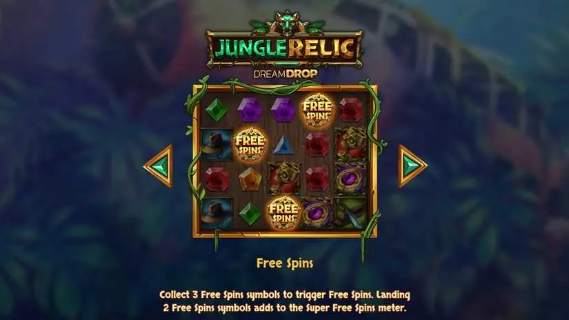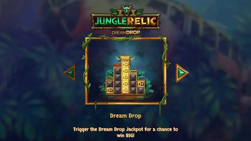 If the sum of all values in Jungle Relic Dream Drop reaches 5000x or higher, the round ends and the player is awarded 5000x the bet.