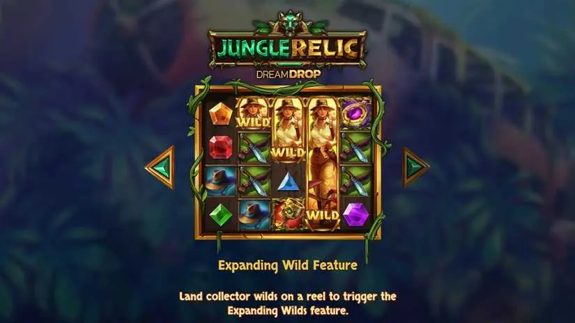 Jungle Relic Dream Drop is a five-reel slot from Relax Gaming with four rows of symbols and 30 active paylines. A payline is formed by matching symbols on adjacent reels along one or more of the set paylines, starting with the leftmost one. Winning combinations and payouts are calculated according to the paytable. Wild symbols substitute for all symbols except special feature symbols when evaluating wins. Only the longest matching combination for each symbol is paid. Once a spin begins, the bet size for that round is locked and cannot be changed. If your balance drops below the selected bet size, the bet size is automatically reduced to the maximum allowed (market dependent). The theoretical return to player for this game is 94.00%.