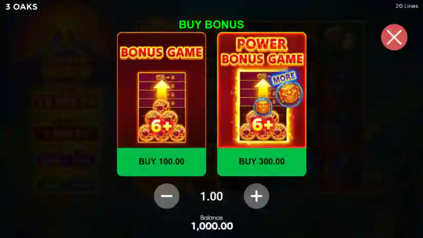 The player can also purchase any type of Bonus Game. Any type of Bonus Game is activated after purchasing the corresponding feature. The player cannot purchase any type of Bonus Game if there is insufficient funds in the account. Any type of Bonus Game is played with the bet that activated it.